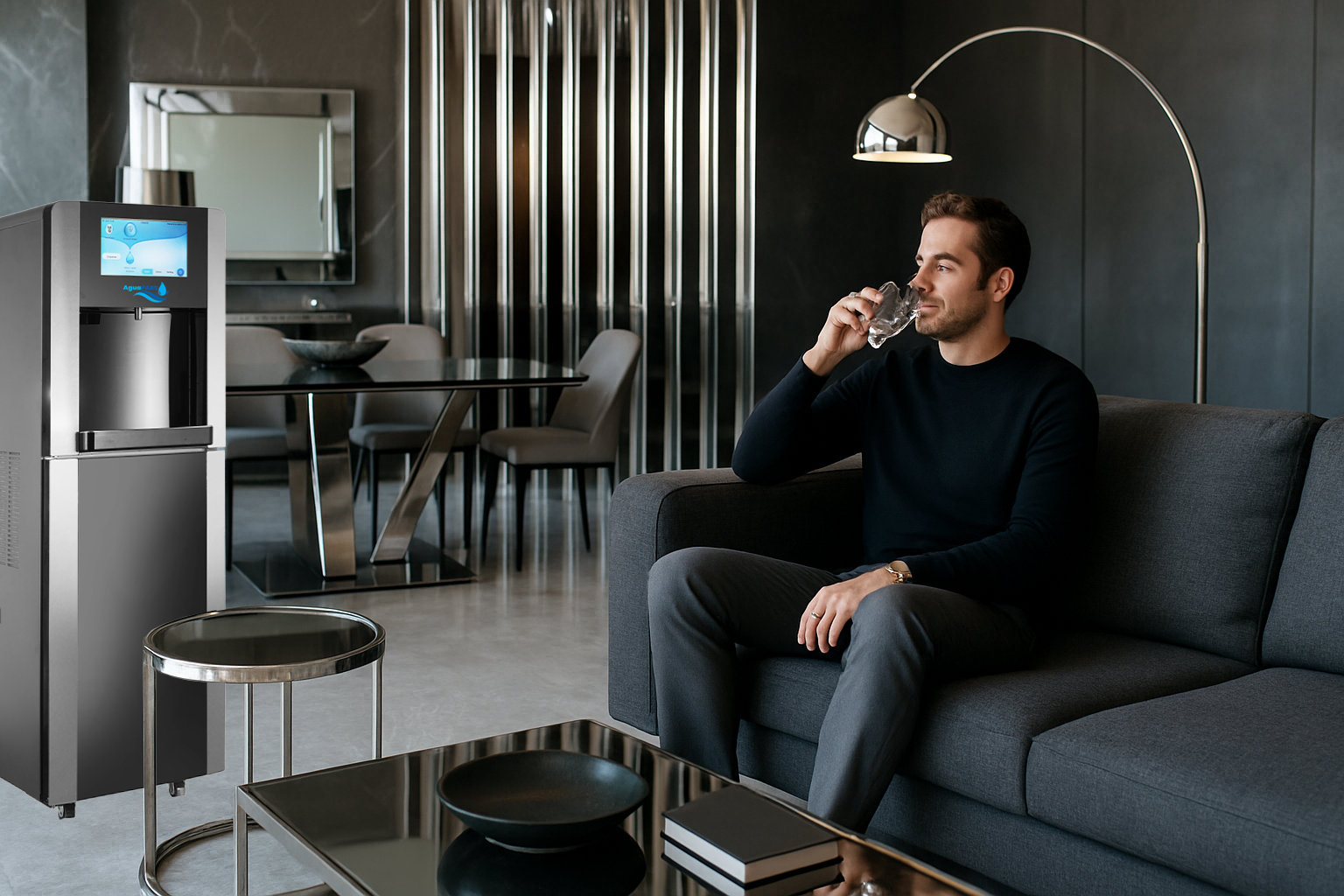 1. Control: LED touch screen 2. Operating temperature: 15℃~43℃ 3. Operating humidity: >25% 4. Avant-garde glossy white & brushed steel design. 5. Plug and play, no installation, no plumbing work, heavy lifting or plastic waste. 6. Easy to transport thanks to its small size. 7. Automatic filter end-of-life reminder. 8. Regular disinfection and circulation filtration for safe drinking water.