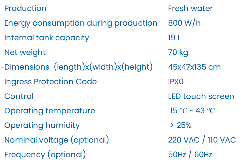 The water production capacity of atmospheric water generators (AWGs) is significantly influenced by ambient temperature and humidity levels. Here's a general overview: Temperature: AWGs perform best at higher temperatures, typically between 25°C and 35°C. Colder temperatures reduce the amount of water vapor in the air, which can lower production efficiency. Humidity: Relative humidity is a critical factor. AWGs usually require a minimum of 30% relative humidity to function effectively, with optimal performance at 60% or higher. Here you can see some examples of the water production capacities of the AquaPARS ALIZE model generator in different environmental conditions.