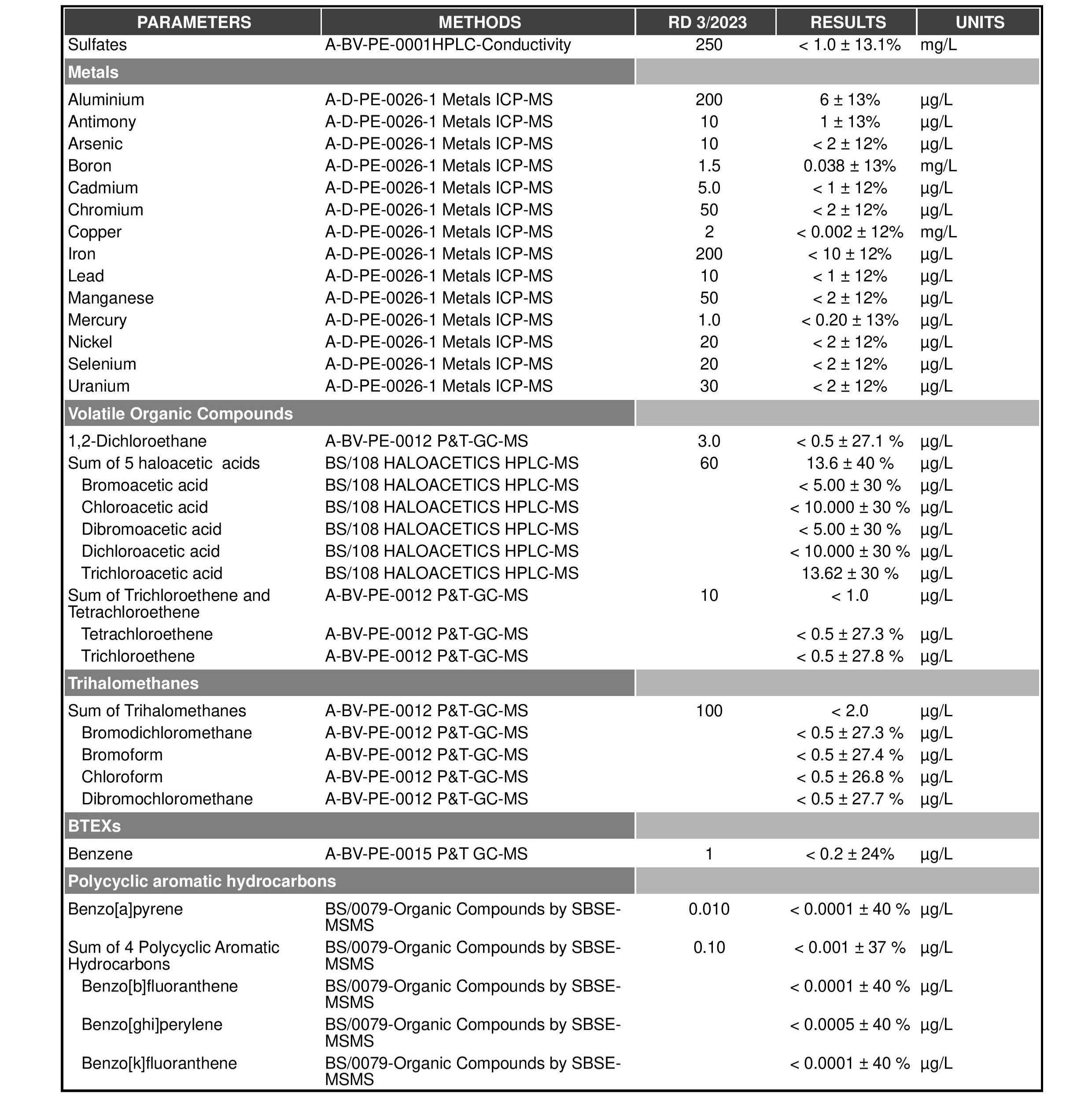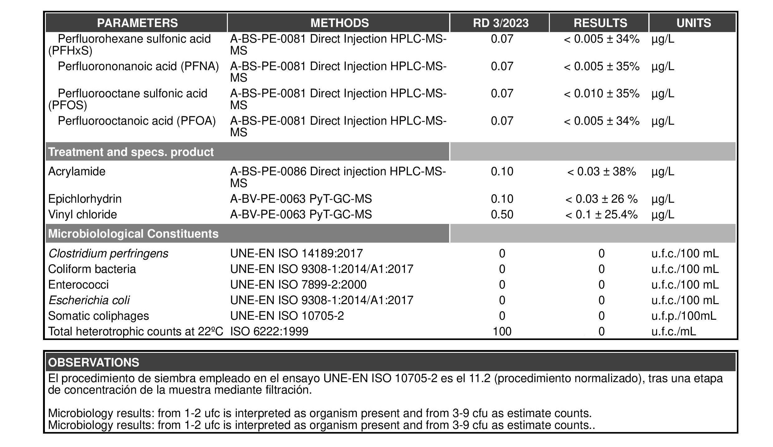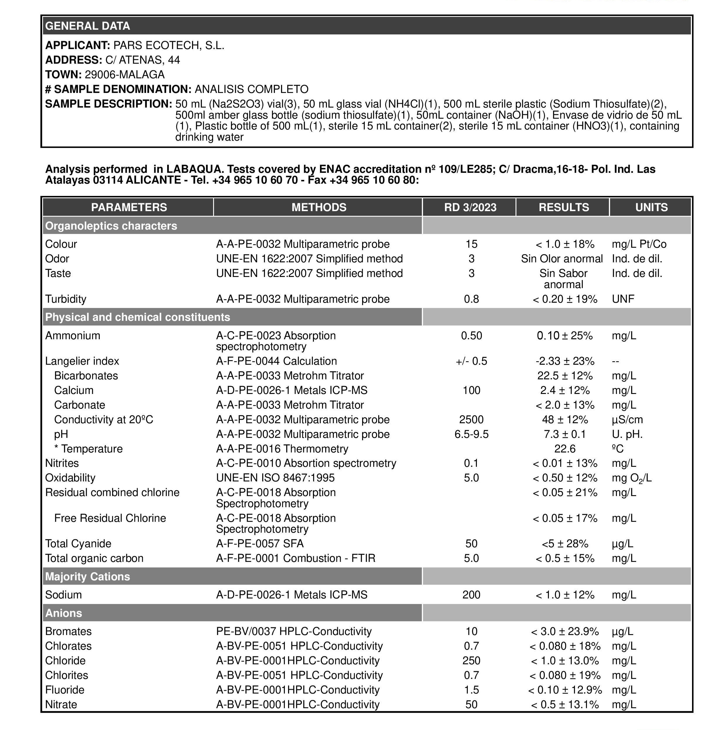 Official analyses of the water generated by AguaPARS, carried out by accredited laboratories in Spain according to the latest regulations